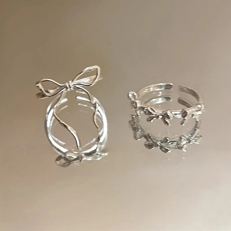 2Pcs Fashion Bow Ribbon Rings For Women Girls Sweet Cute Geometric Bow Opening Adjustable Rings Wedding Party Jewelry Gifts