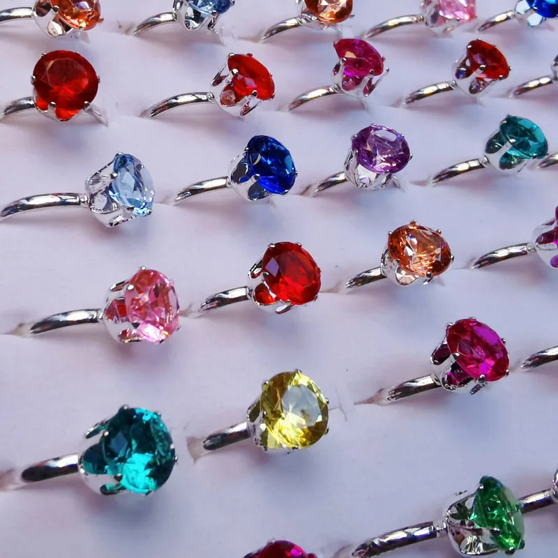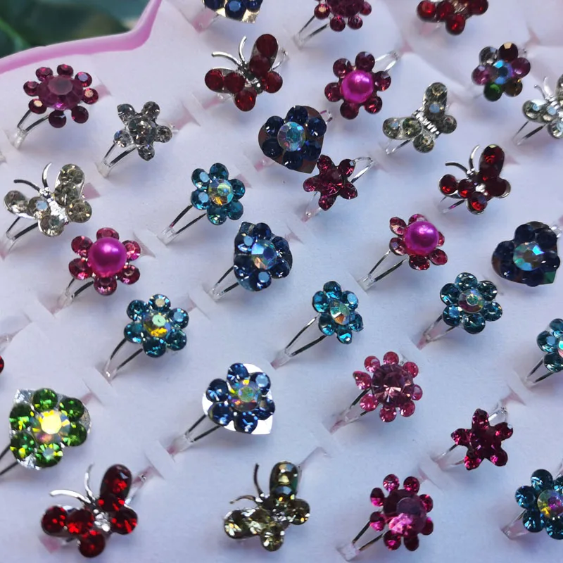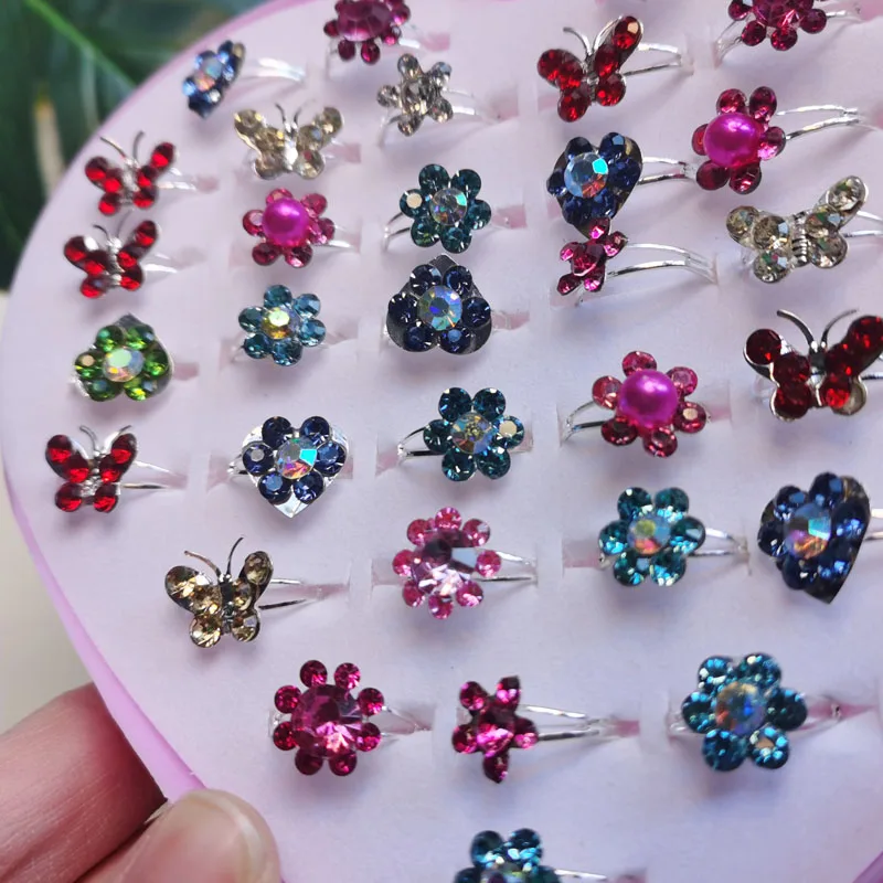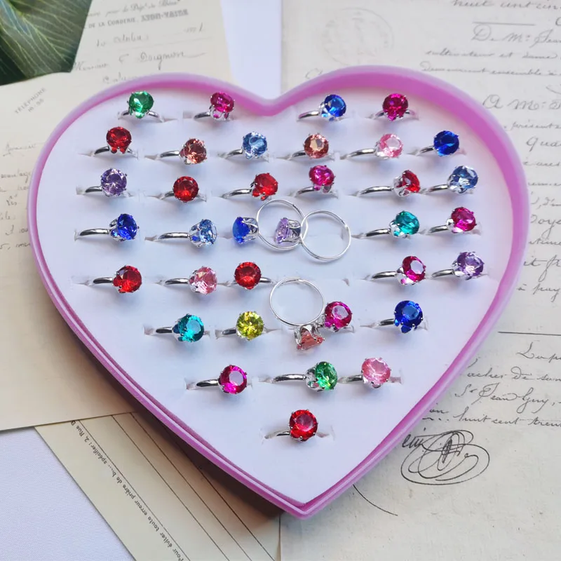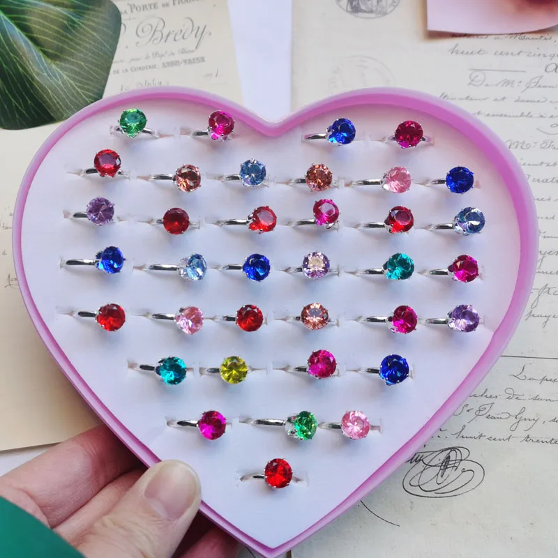 5pcs/Box Zircon Rings For Girls Kids Child Jewelry Adjustable Little Crystal Play Box Gift Toy Pretend Dress Up Rhinestone Ring