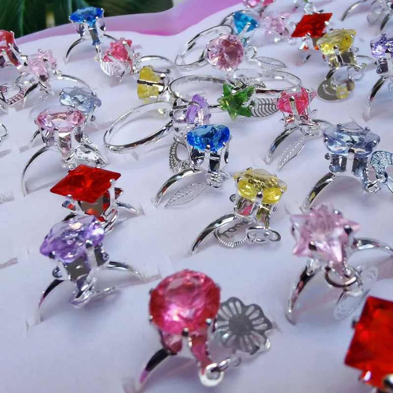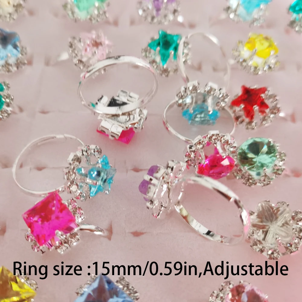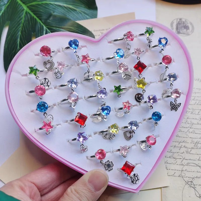 5PCS/BOX Adjustable Kids Star Square Round Zircon Rings Jewelry Heart Crystal Open Finger Ring For Children Girls Birthday Party Gift