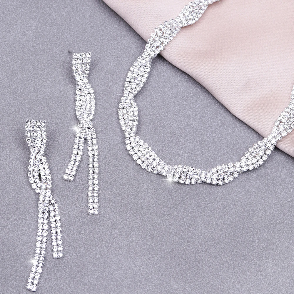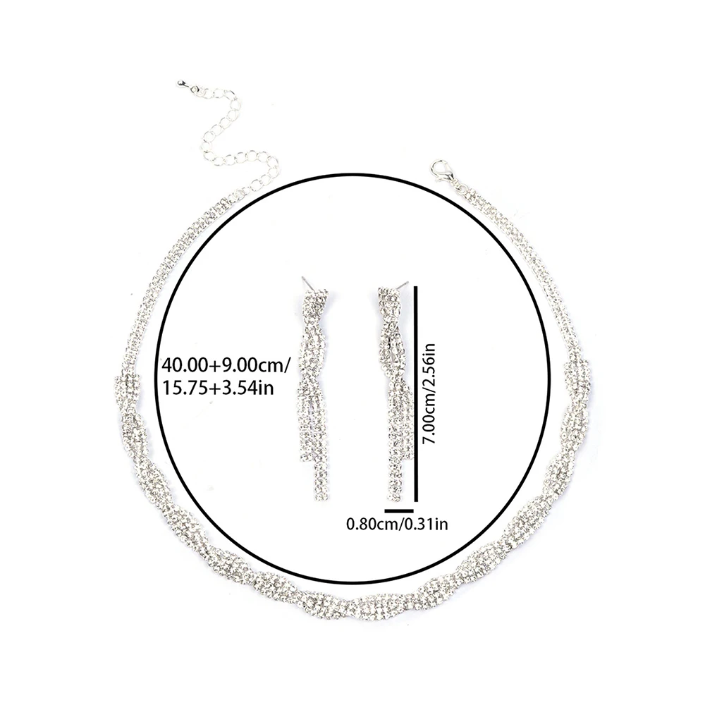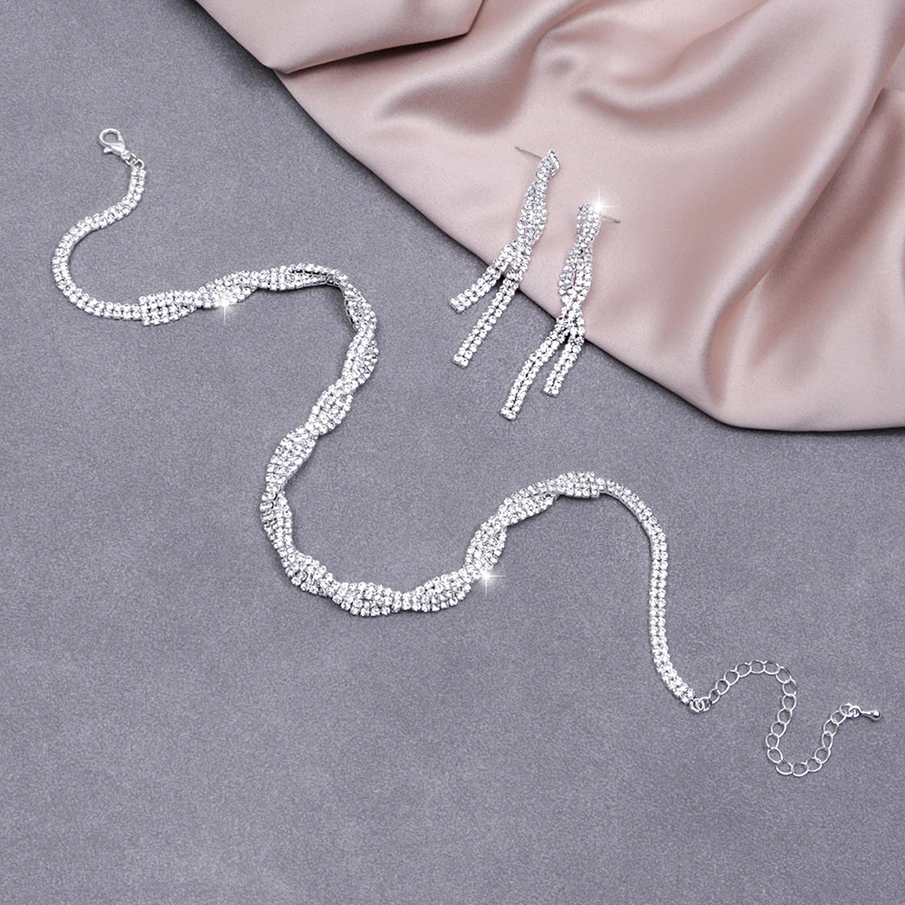 Female Fashion Exaggerated Jewelry Exquisite Silvery Earrings Necklace Set Choker Dinner Decorations For women