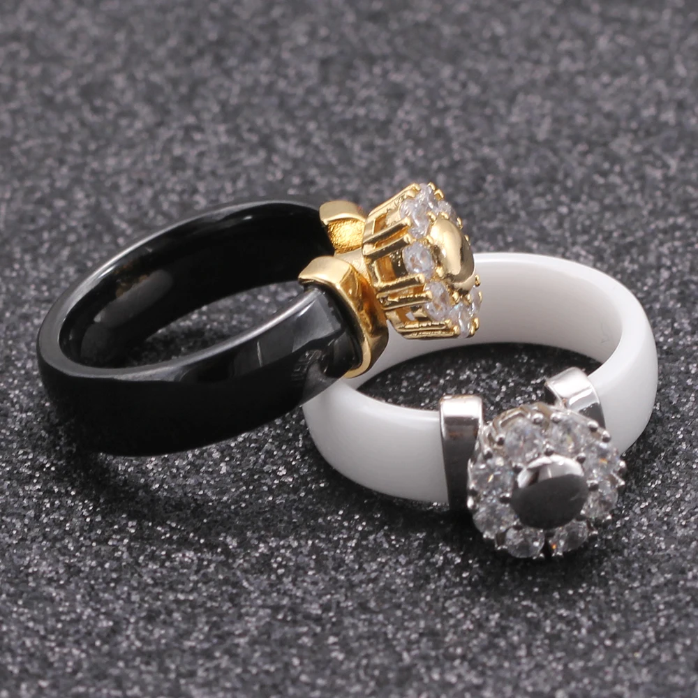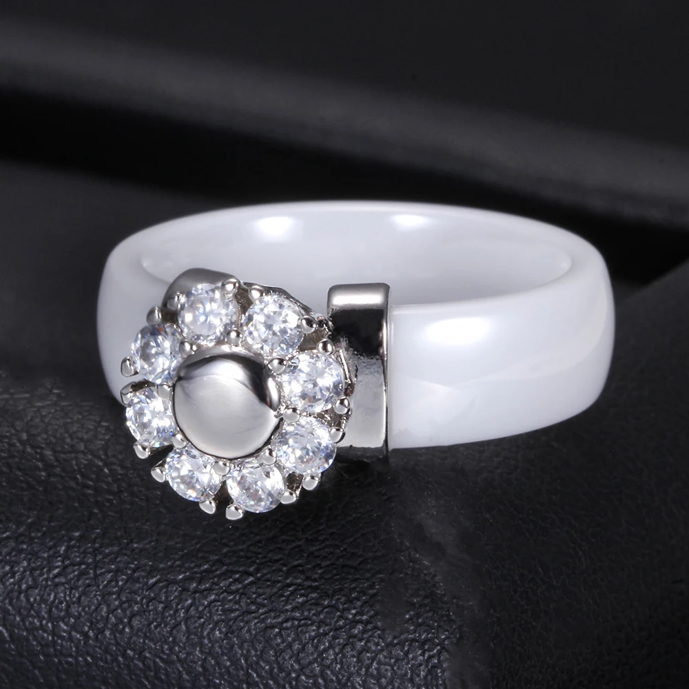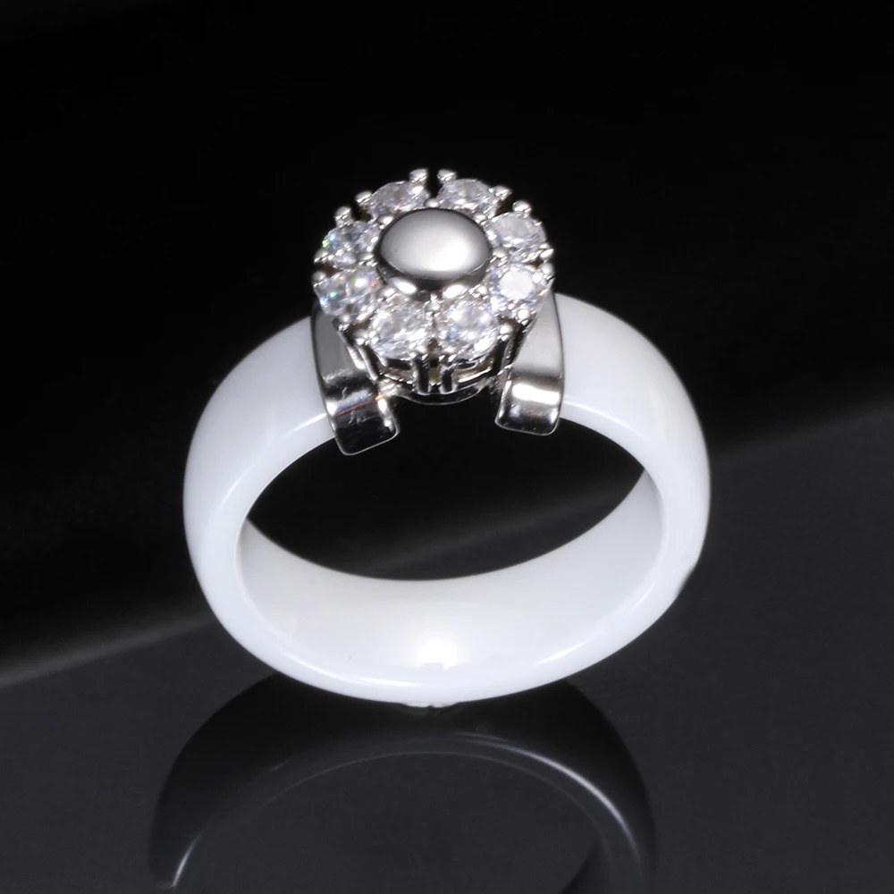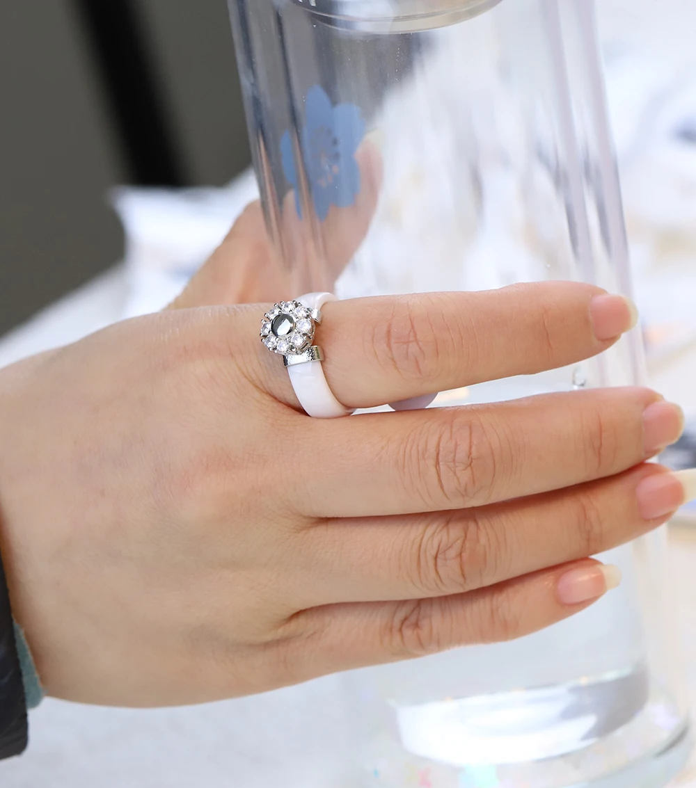 Female Girls Clear Crystal Geometric Ring Good Quality Healthy Ceramic Ring Promise Wedding Engagement Rings For Women Gifts