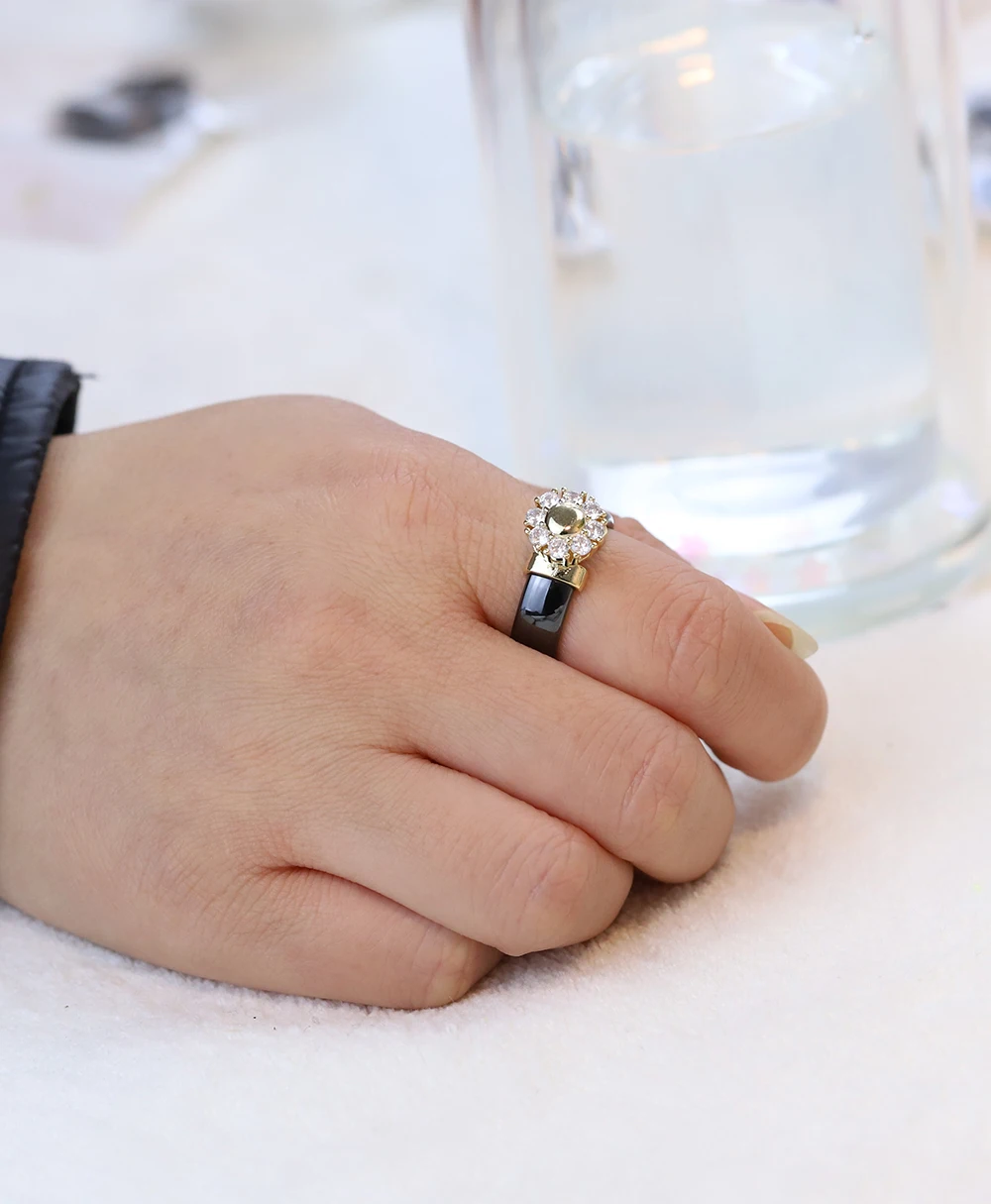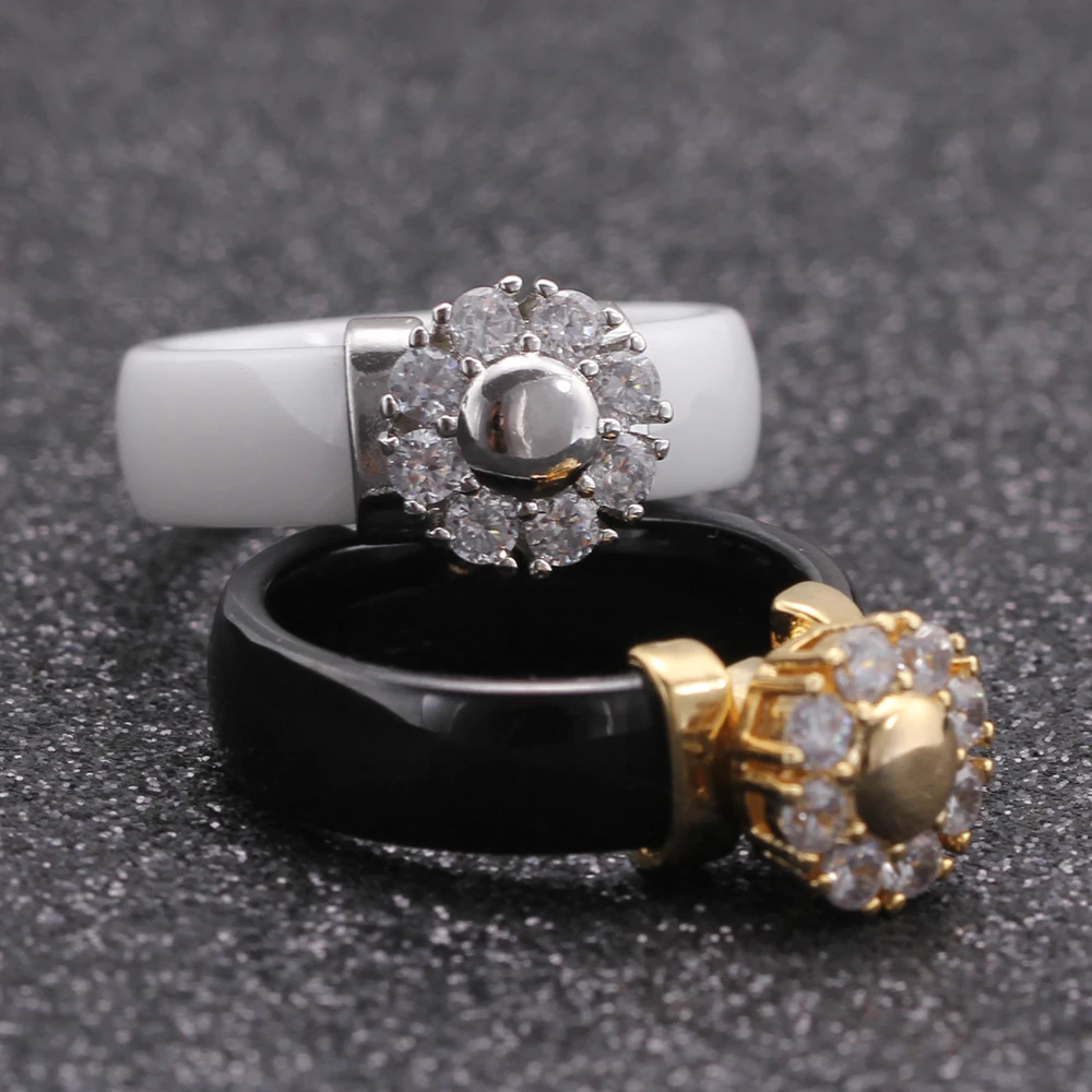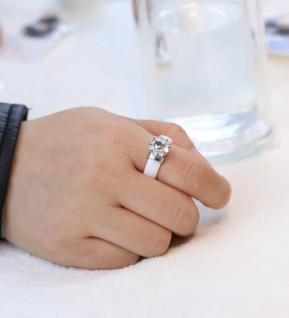 Female Girls Clear Crystal Geometric Ring Good Quality Healthy Ceramic Ring Promise Wedding Engagement Rings For Women Gifts